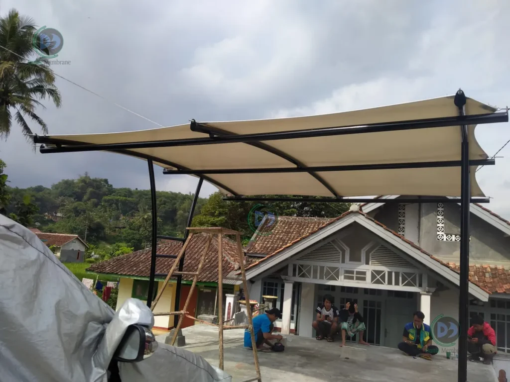Material membrane punya berat hanya sekitar 1–3 kg/m². Jauh lebih ringan dari atap konvensional, sehingga beban ke struktur bangunan jadi lebih kecil.